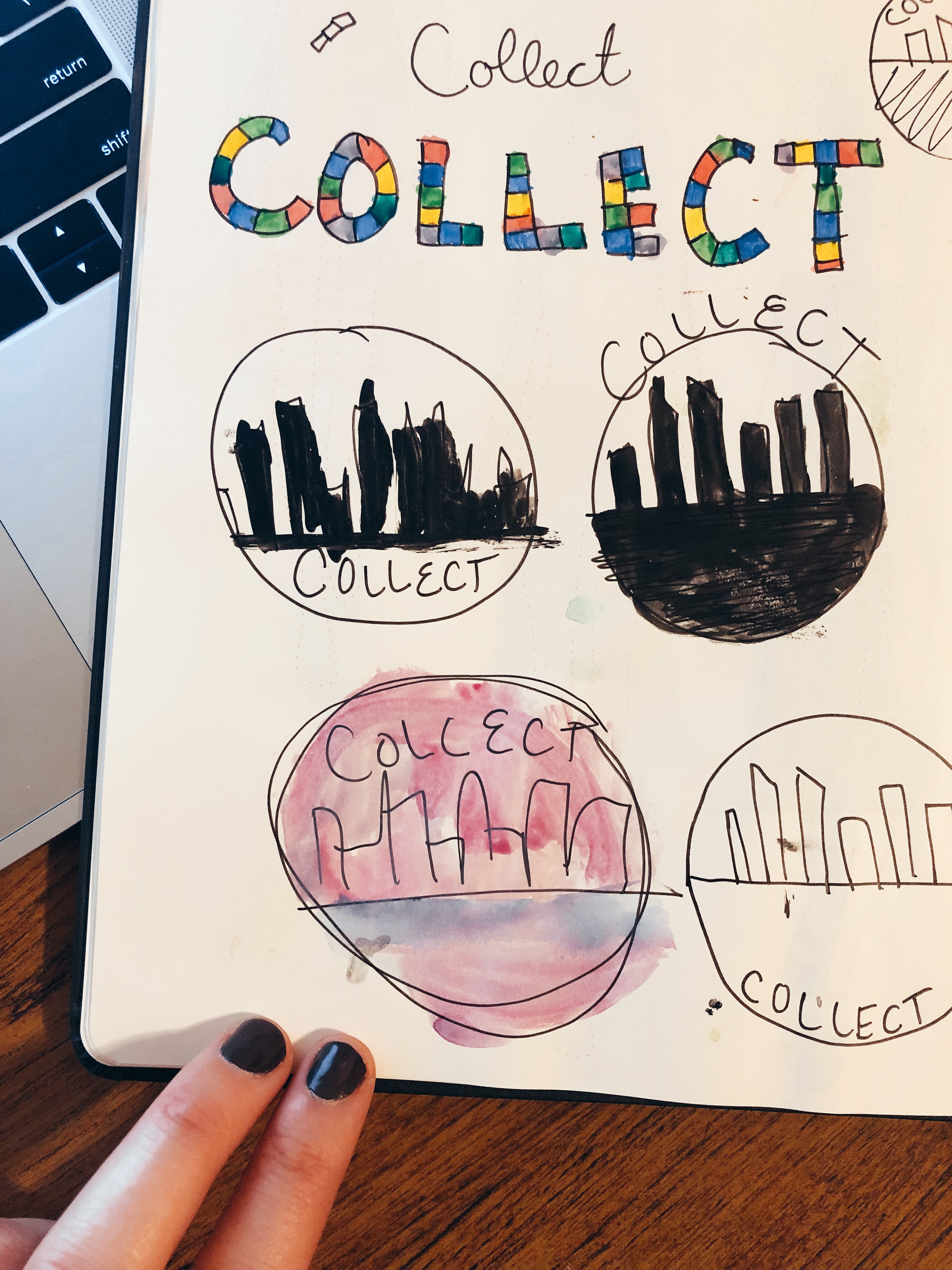 Collect came up because I love planning events and rarely have enough space to do so. I wanted to create a kind of guide that would help people plan more events in their area while using outdoor spaces. When I was developing the different material for Collect I had the most difficulty with the logo portion and Illustrator so I knew that there was the most room for improvement here.
