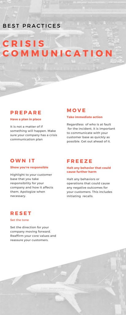 I created this infographic as a piece of my Crisis Communications’ project for my capstone course in Strategic Communication. The goal was to create an info graphic that highlighted best practices for crisis communication scenarios. This infographic was specifically designed with Boeing and the 737 Max crisis in mind, but it is applicable across the board to crisis communication scenarios.